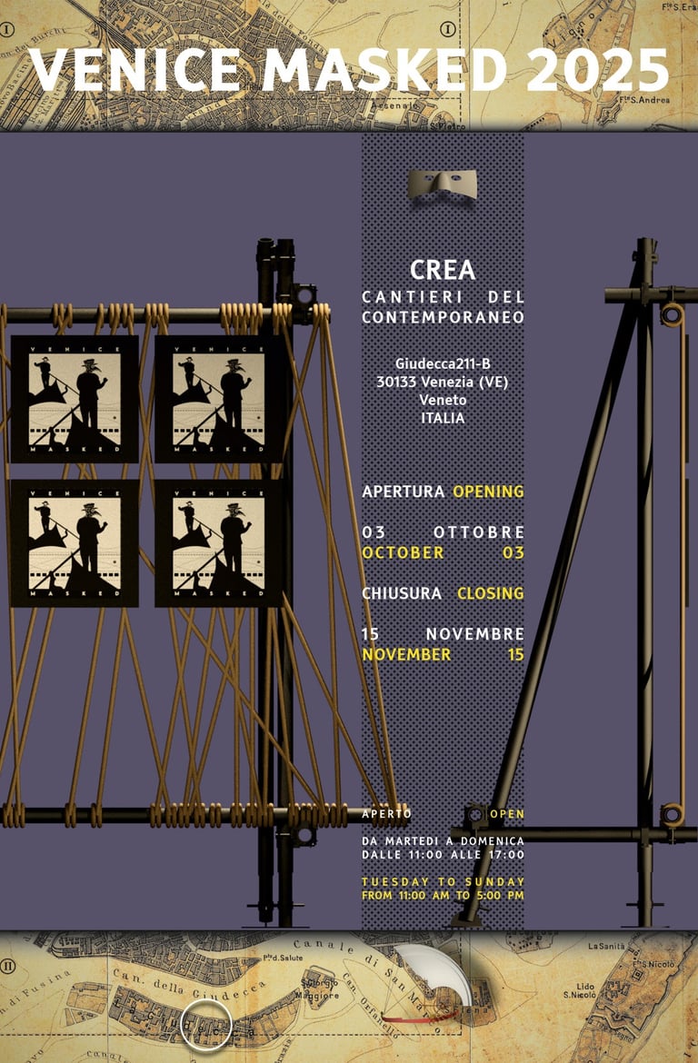 Venice Masked 2025, an innovative and engaging group exhibition, opened its doors to the public on October 4, 2025, at the CREA Cantieri del Contemporaneo exhibition spaces in Venice.